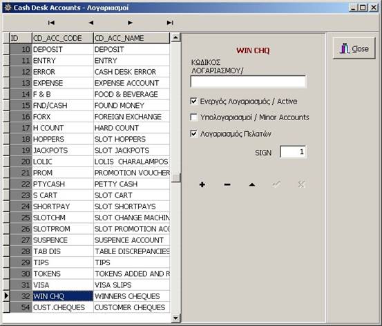 Account Code : Short name to be displayed in some reports and receipts Account Name: Full name of the account Acc.Code : Additional code for link to external accounting software Active/Inactive : To enable transactions of a specific account, it must be enabled