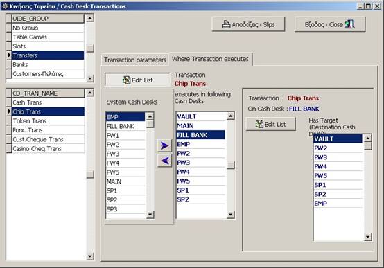 “Chip Trans” is allowed at : VAULT,MAIN,FILL BANK,EMP,FW2,FW3,FW4,FW5,SP1,SP2.