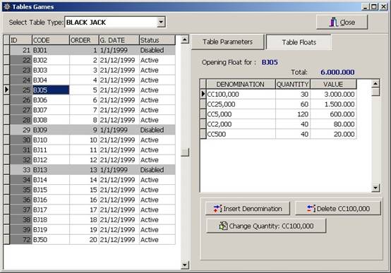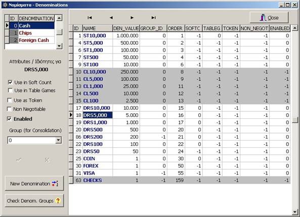 Parameters: Value Display and print order Group (used in consolidation) If it is used in Soft Count If it is used in the Table games If it is a Token Non negotiable