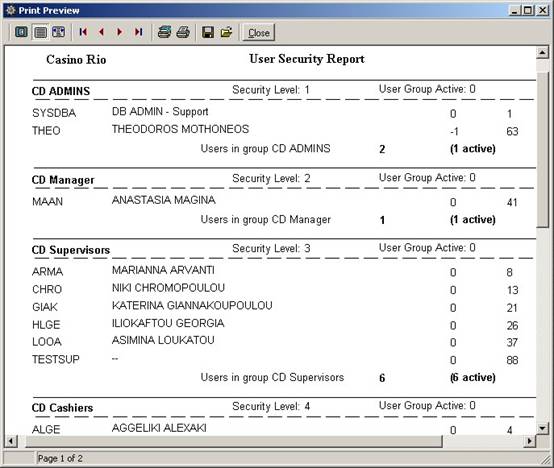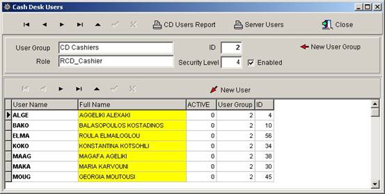 All saved transactions include the user name logged in. The users are grouped according to their user rights (access levels) :