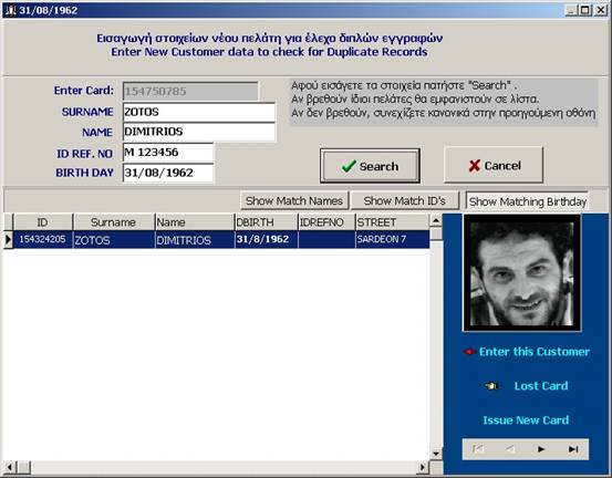 If there is a duplicate record, the screen below shows up, with the name, address and birthday of the members with the matching data.
