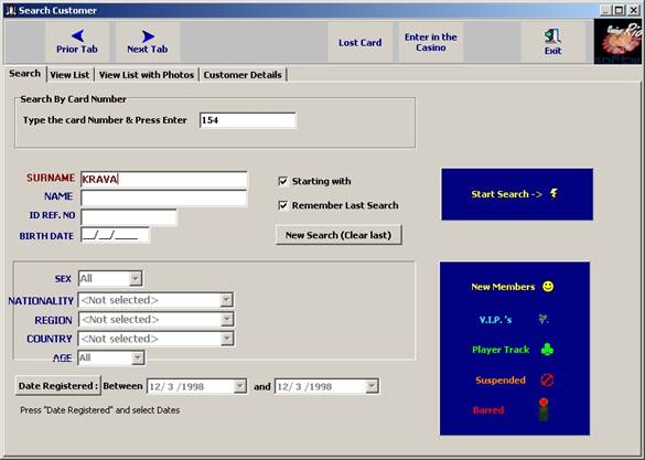 · New members (for current gaming date) · V.I.P.’s · Members with Player Tracking information · Suspended · Barred