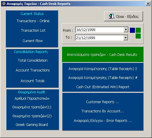 Home | Cash Desk | Table Games | Reception | Player Tracking | Slots | Surveillance | Doc Management | Technical Specs