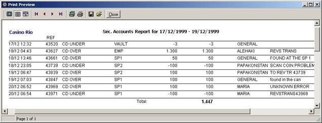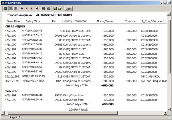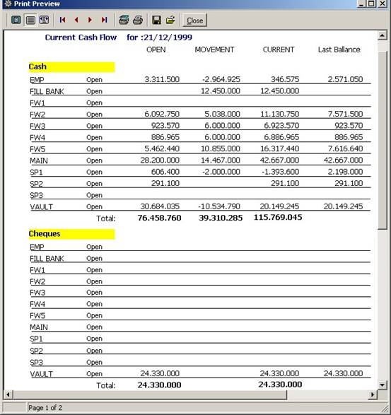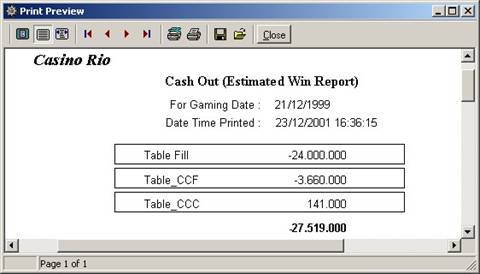 This report shows the current flow of Cash, Chips and Cheques of the Casino.