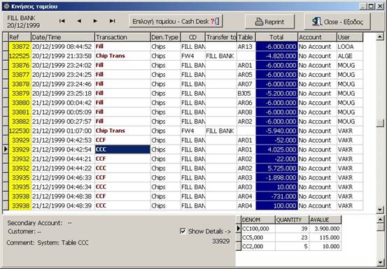 CURRENT    : Cash/Cheques/Chips that should be on every cash desk according to the transaction history